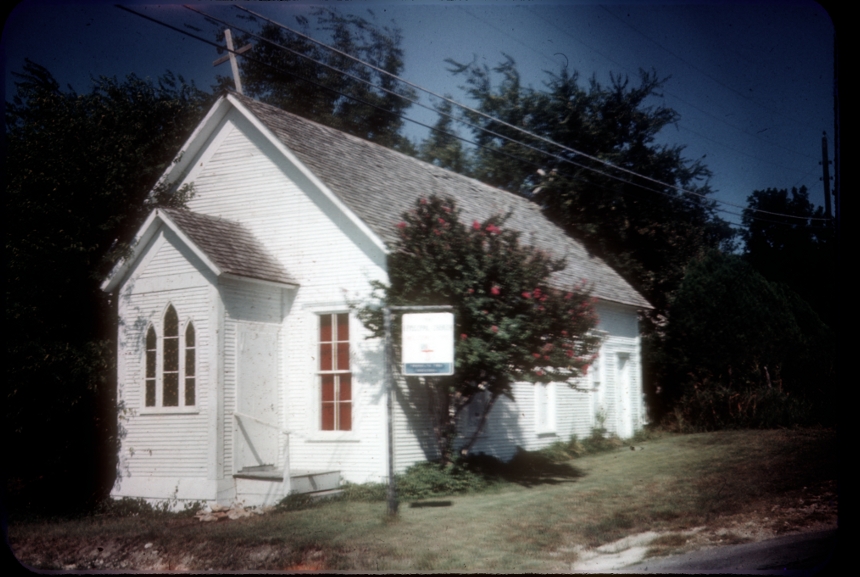 Oldest original church building in Decatur. Consecrated by great missionary Bishop, the Rt. Reverend A. C. Garrett. Erected facing Main Street (2 blocks west of square) in 1889. Known as "The Little Church with the Crosses", by 1912 it had deteriorated, but was restored and moved, facing Walnut Street. In 1940 building was sold, used as mattress factory, but rescued same year and moved here, with sanctuary placed symbolically to east, toward Jerusalem.
