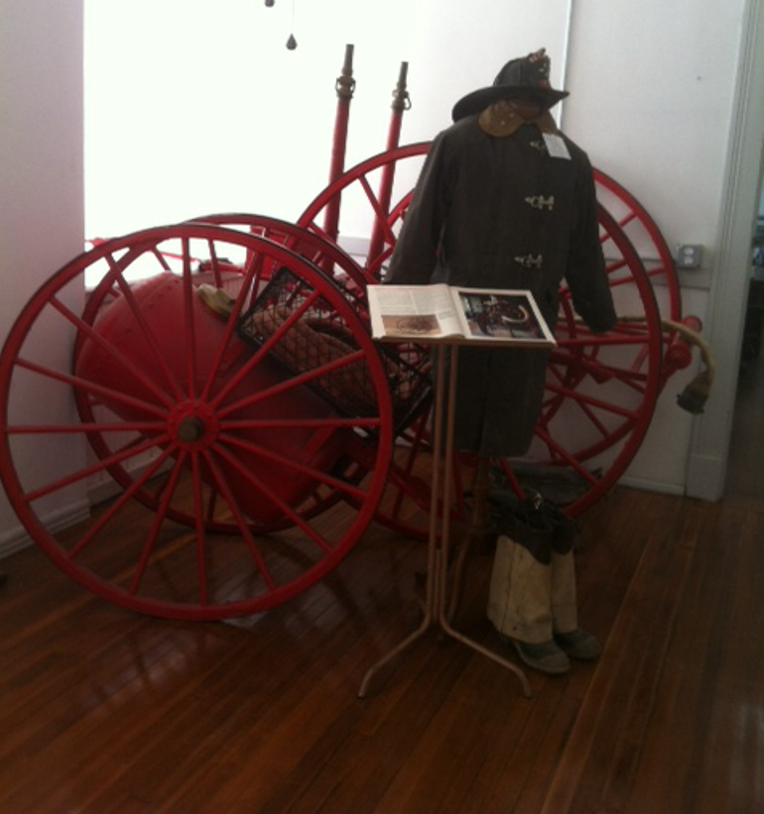 Exhibit includes horse drawn pumps and fire fighter protective clothing.